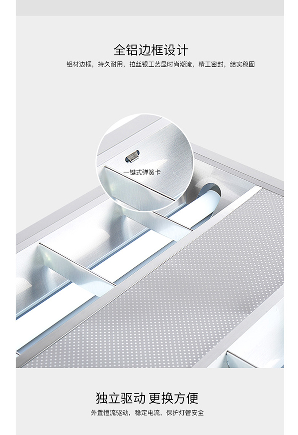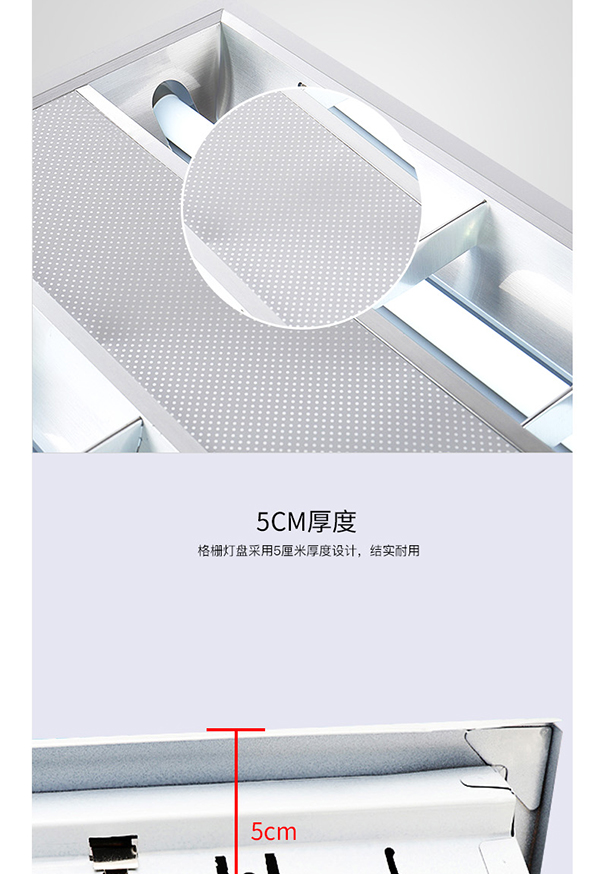 1、取下燈盤上之格柵反光罩,注意取格柵反光罩時輕拿輕放,不要刮傷,將燈具本體放置已預留好的天花龍骨上。放置時請注意四邊的位置,讓其燈具四邊完全擱置龍骨條上,以免燈具掉落,注意當燈具較重時,請用線絲將燈具吊裝在天花板上。