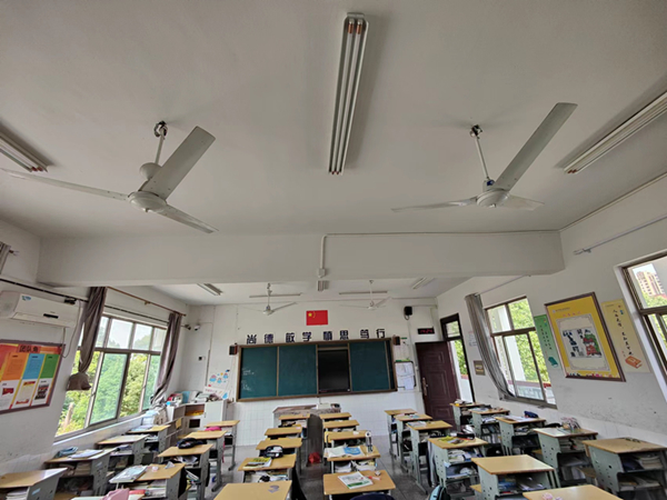 教室采用傳統的熒光燈管,教室里部分區域的光線偏暗,燈光照度不均勻,沒有設置黑板專用燈具。學生長期在照度不足的光環境下學習,極易導致視覺疲勞,不利于學生視力健康,嚴重影響學生的學習效率。